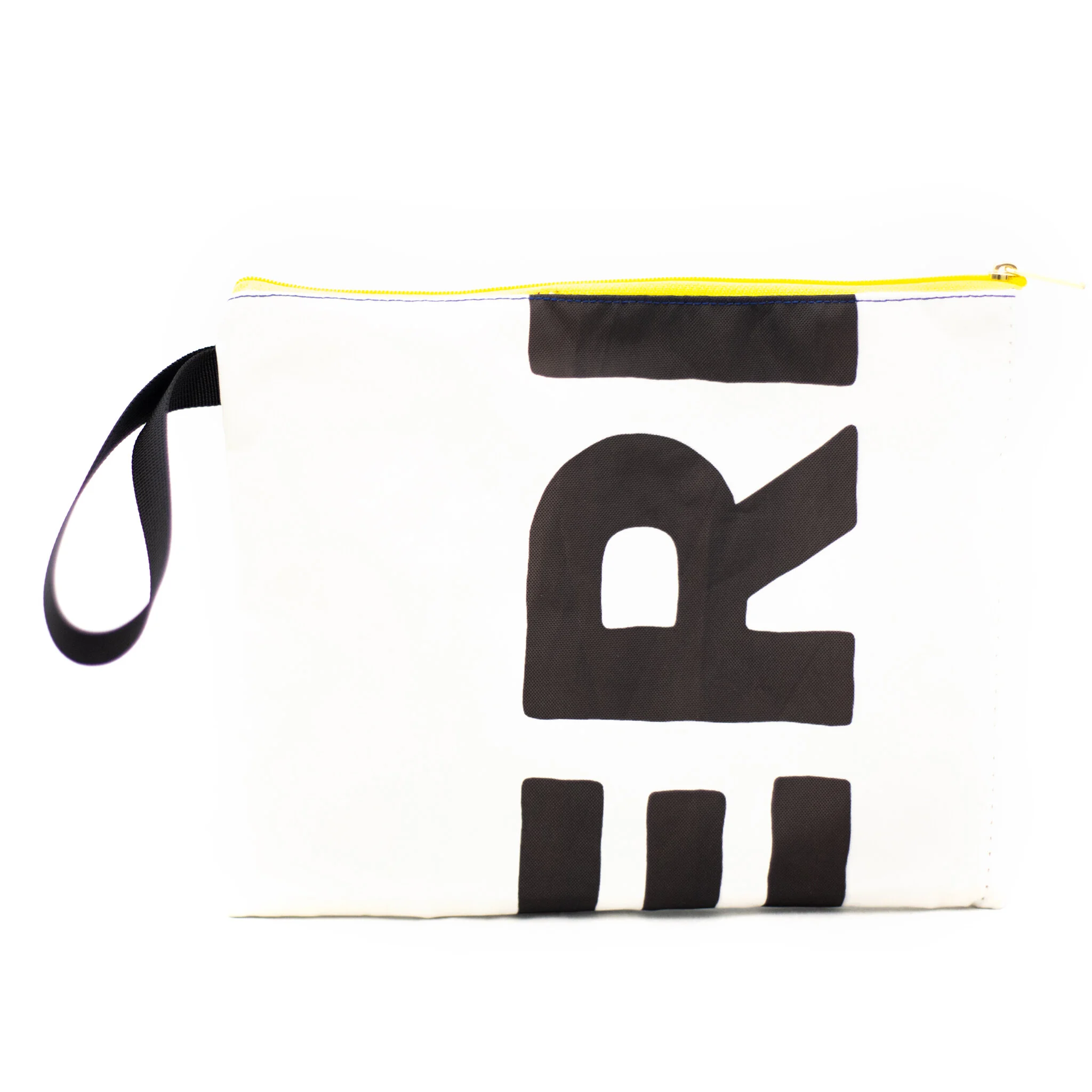 Zippered Pouch, fully lined 9" tall x 12" wide with nylon 10” loop wristlet x 1/2" wide.